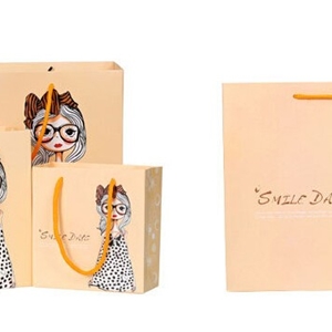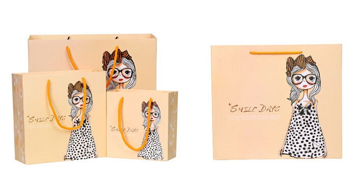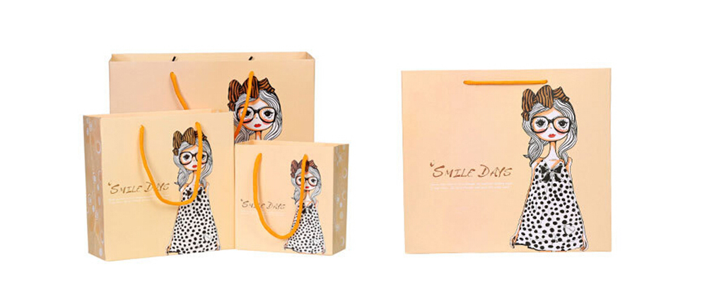 卡通女孩黃色唯美化妝品白卡紙袋定制