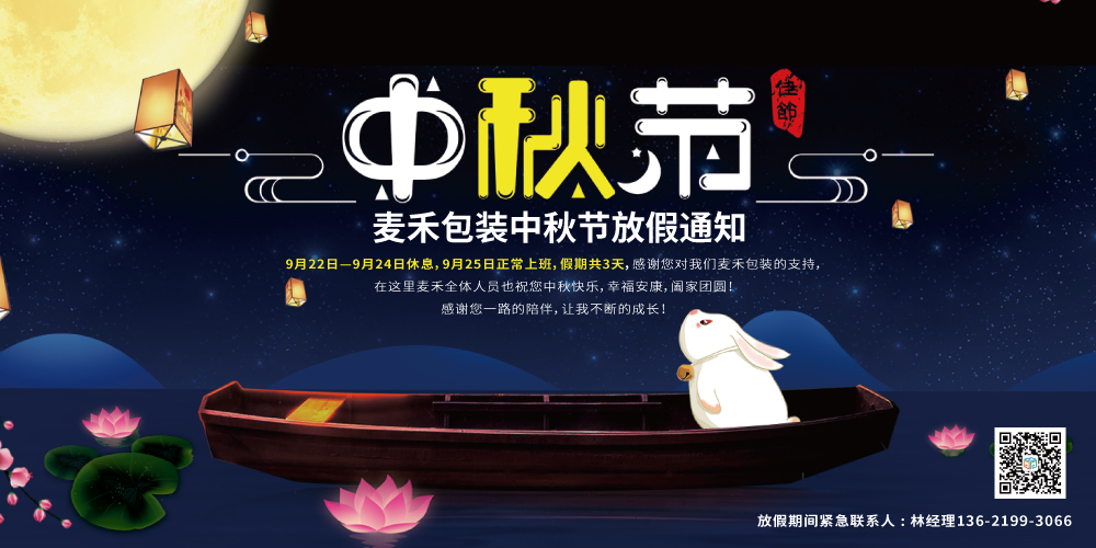 麥禾包裝中秋節(jié)放假安排如下,請各位朋友悉知: